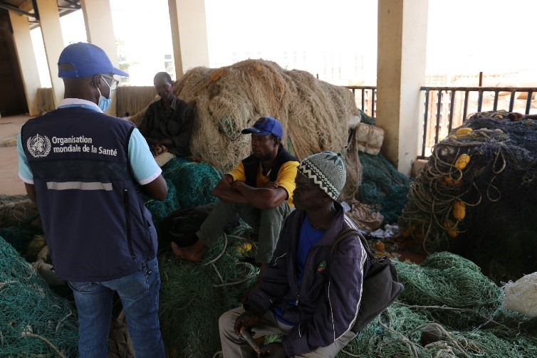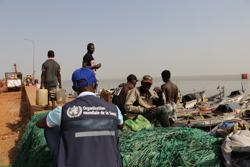 Photo Caption: Ebola prevention awareness-raising session with fishermen departing to islands, Port of Bandim, Guinea-Bissau.