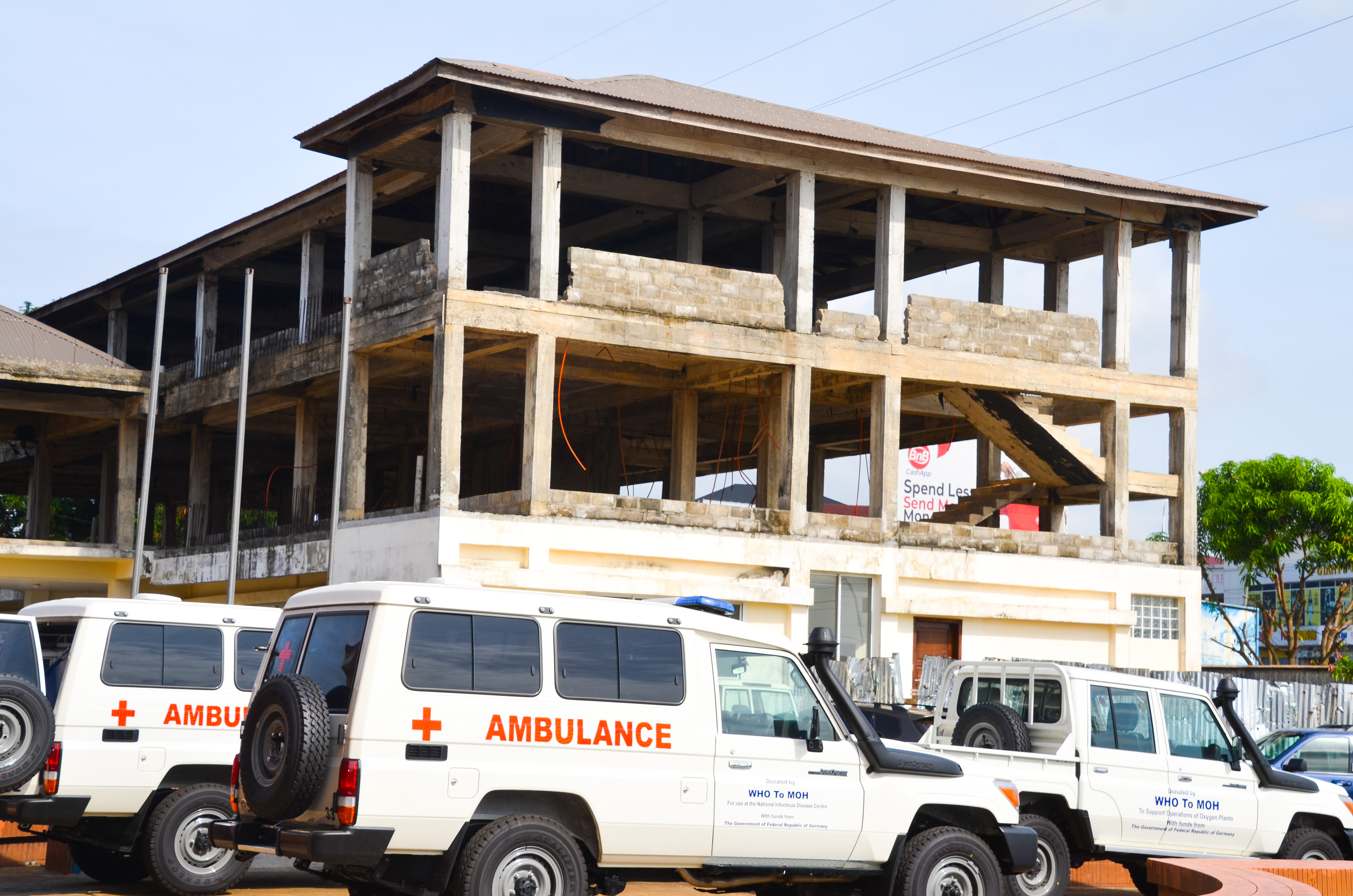WHO donated a Land Cruiser pickup to support oxygen plant operations, along with two ambulances for use at the National Infectious Disease Center, reinforcing emergency care in Liberia.