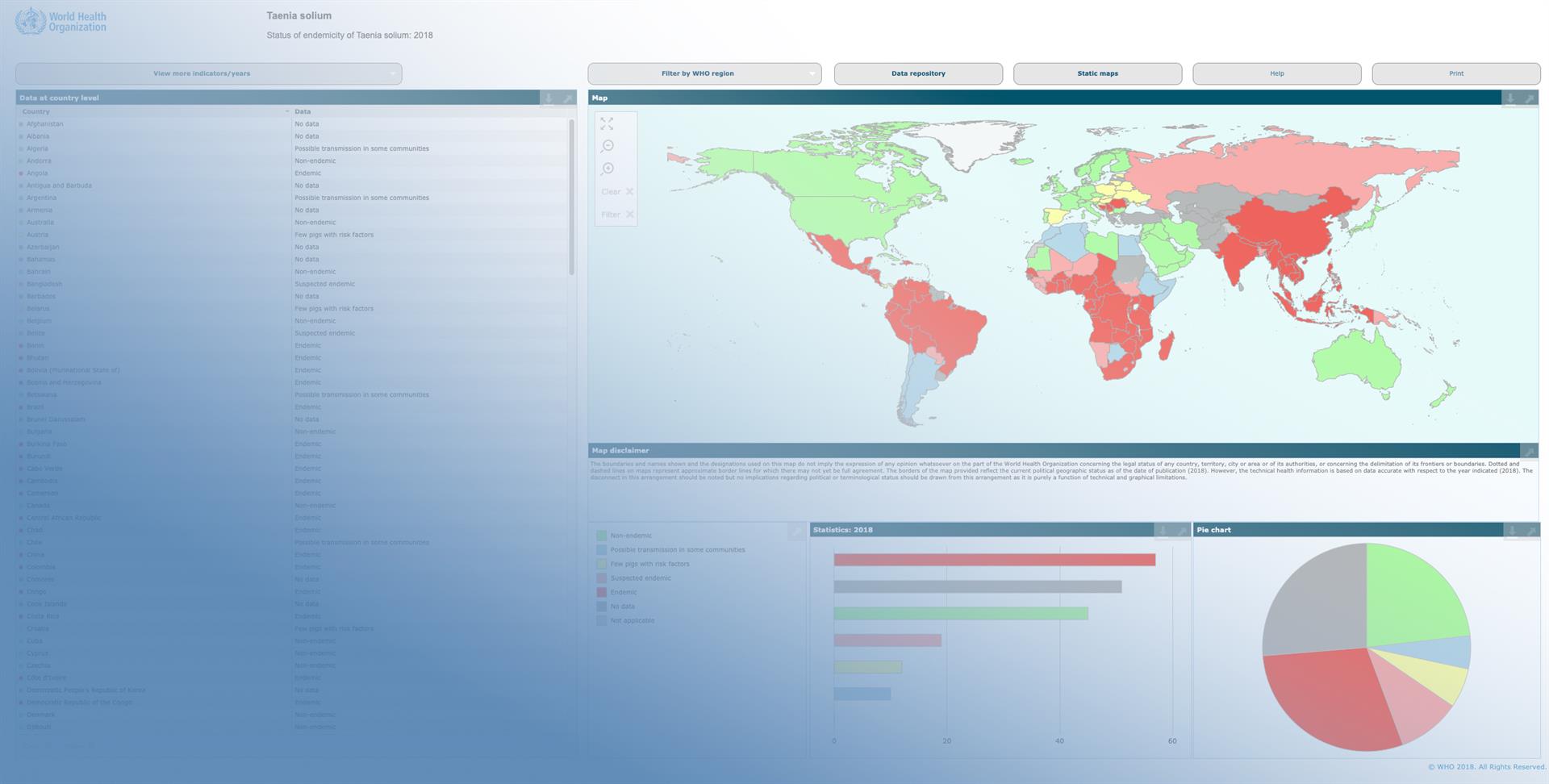 Robust surveillance data is fundamental to assess disease burden, take action and evaluate progress of control actions. As for other neglected diseases which occur in underserved populations and remote areas, data is especially scarce. WHO counters this situation by collecting and mapping data on T. solium, and risk factors associated with the occurrence of the parasite, such as information on pig keeping, food safety and sanitation. This information for T. solium has been incorporated into the WHO Global Health Observatory.