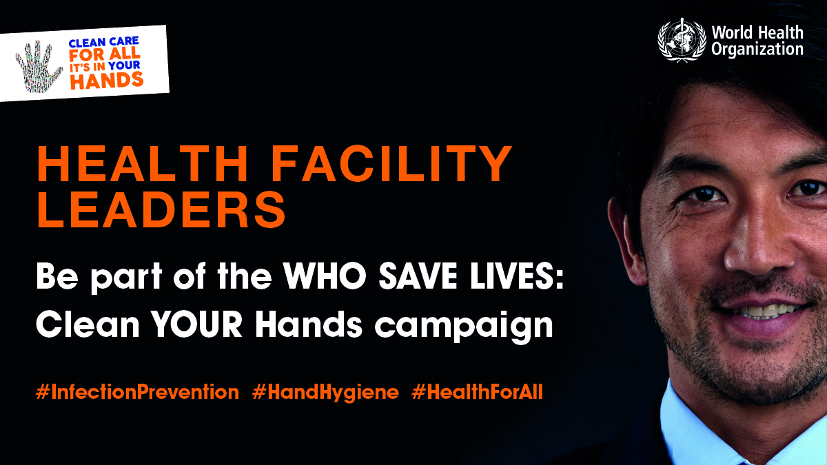 Health facility leaders: "Is your facility up to WHO infection control and hand hygiene standards? Take part in the WHO survey 2019 and take action!”