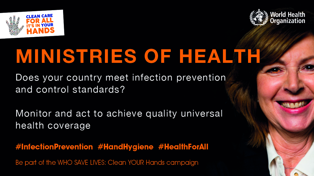 Ministries of health: "Does your country meet infection prevention and control standards? Monitor and act to achieve quality universal health coverage."
