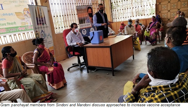 To increase acceptance, the state government took a decision to work with gram panchayat (village council) representatives to address vaccine hesitancy in the community. The Director Medical Health Services asked district nodal officers to conduct meeting at village level with the help of the PHC medical officers and gram panchayat members.