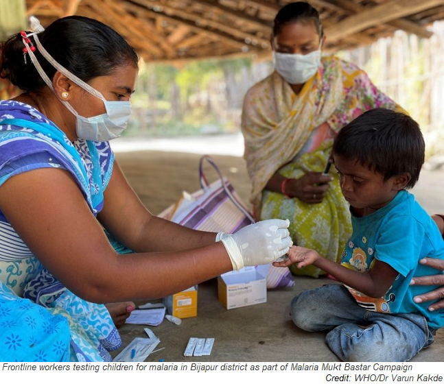 Frontline workers tested children for malaria in Bijapur district under make-shift camps and went door-to-door in remote areas under the Malaria Mukt Bastar Campaign (Malaria Free Bastar Campaign) to ensure no child was missed.
