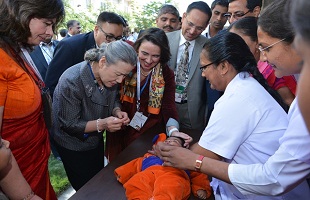 The special celebration was held in the august presence of Mr Nitinbhai Patel, Minister of Health; Mr Shankarbhai Chaudhary, Minister of State for Health; Mrs Ban Soon-taek; Shri Anil Mukim, Principal Secretary, Health and Family Welfare, Gujarat; Shri J. P. Gupta, Commissioner, Health & Family Welfare, Gujarat; Mr Louis Georges Arsenault, UNICEF Representative to India; Dr Pradeep Haldar, Deputy Commissioner, Immunization, Ministry of Health & Family Welfare, Government of India and and senior officials from Gujarat government and WHO India, partner agencies as well as ASHA and ANM representatives.