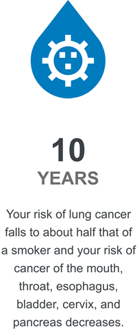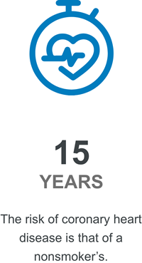 Quitting tobacco is not easy, but the health benefits far outweigh the health risks. When you stop smoking, the benefits start almost immediately. Your heart rate and blood pressure drop in only 20 minutes. Within 12 hours, the carbon monoxide level in your blood returns to normal and coughing and shortness of breath can decrease in as little as one month. Ultimately, when you quit tobacco, you will experience improved breathing with healthy lungs and increase your chances of a longer life.