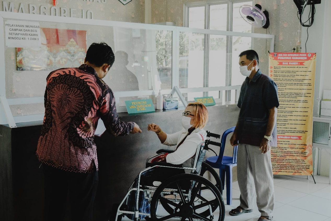 “We have plenty of patients with disabilities, elderly and pregnant women. They have the same rights to healthcare services, and we prioritize the more vulnerable population groups to be served in Puskesmas,” said Rosnilam, Head of the Puskesmas Margorejo.