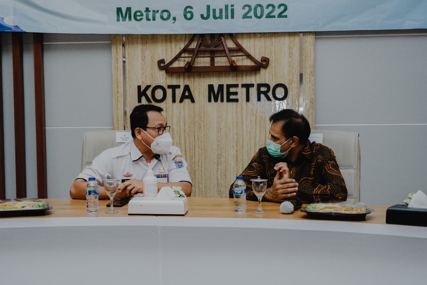 Fig. 04 Dr H. Wahdi, Mayor of Metro City (left), in conversation with Dr Farrukh Qureshi, Technical Officer of WHO Indonesia. Photo Credit: WHO/Pixelite