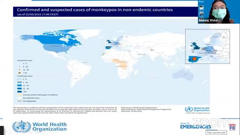Fig. 1. WHO presented global situation on monkeypox in a webinar organized by Ministry of Health, 31 May 2022 Credit: Endang Widuri W/WHO Indonesia