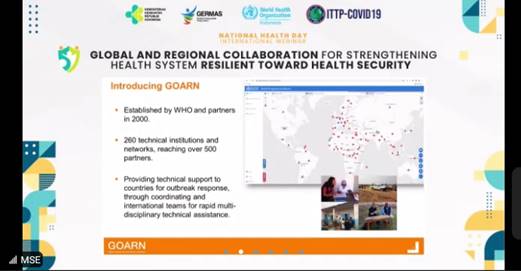 On 23 November, as part of the national health day webinar series, the Ministry of Health (MoH), in collaboration with WHO, organized an international webinar on ‘Strengthening Health Systems Resilience Towards Health Security’. A total of 580 participants from multiple sectors attended the webinar. Participants included healthcare workers, representatives from Provincial (PHOs) and District Health Offices (DHOs), health facilities, universities, public health scholars, and professional organizations. The webinar aimed to improve knowledge and increase awareness, to learn from COVID-19 experiences to strengthen health systems to advance health security and improve global and regional collaboration for strengthened health security.
