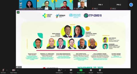 During her remarks, Dr Poonam Khetrapal Singh, WHO Regional Director for South East Asia, commended the Government of Indonesia for their robust response to the COVID 19 pandemic and reiterated the importance of: (1) acceleration of vaccination among high risk groups, including the older population and people with underlying medical conditions; (2) continuous implementation of evidence informed public health and social measures to control transmission; (3) contact tracing, quarantine and isolation to ensure rapid response to localized clusters, which is critical in preventing larger community transmission; (4) strengthen genomic surveillance activities for monitoring of SARS CoV 2 variants; (5) strengthen health emergency preparedness and health system readiness; and (6) periodic monitoring of the implementation of Intra Action Review (IAR) recommendations. She also commended Indonesia’s active participation and leadership in health and health security in the South East Asia region.