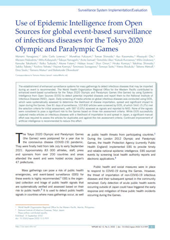 In 2021, the National Institute of Infectious Diseases, Japan, undertook enhanced event-based surveillance (EBS) for infectious diseases occurring overseas...