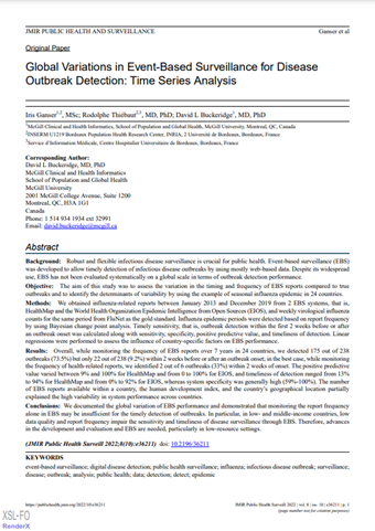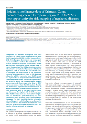 Publications included in this section showcase articles describing practical use cases of the EIOS initiative or in which the EIOS system is analysed, evaluated, or compared to other public health intelligence systems. The EIOS Core Team makes no claims or guarantees about the completeness, accuracy, content or quality of information contained.