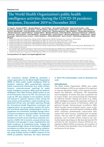 The coronavirus disease (COVID-19) presented a unique opportunity for the World Health Organization (WHO) to utilise public health intelligence (PHI) for...