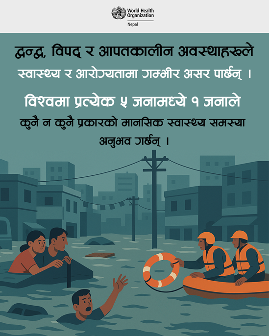 In the third week of September, Nepal experienced heavy and continuous rainfall, which caused widespread destruction across 21 districts, with seven being severely affected. Over 50 health facilities sustained damage. The relentless downpours led to severe flooding, landslides and road blockages, disrupting transportation, livelihoods and public safety on a large scale.