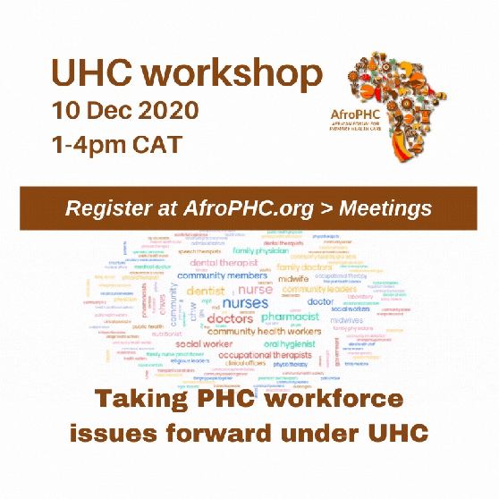 Join us for a 3hr virtual workshop, linked to UHC Day, to workshop the question “What is next for AfroPHC, considering the UHC movement?” We are especially concerned about workforce issues in PHC under UHC.