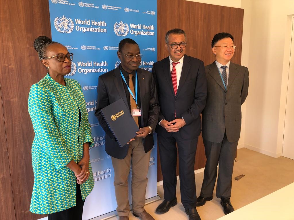 In delivering the letter of acknowledgement during a ceremony held today in Geneva, on the margins of the Seventy-fifth World Health Assembly, the Director-General of WHO, Dr Tedros Adhanom Ghebreyesus congratulated Professor Moustafa Mijiyawa, Togo’s Minister of Health, Public Hygiene and Universal Access to Care, on this important achievement. Dr Matshidiso Moeti, WHO Regional Director for Africa and Dr Ren Minghui, WHO Assistant Director-General for Universal Health Coverage / Communicable and Noncommunicable Diseases, also attended the event.