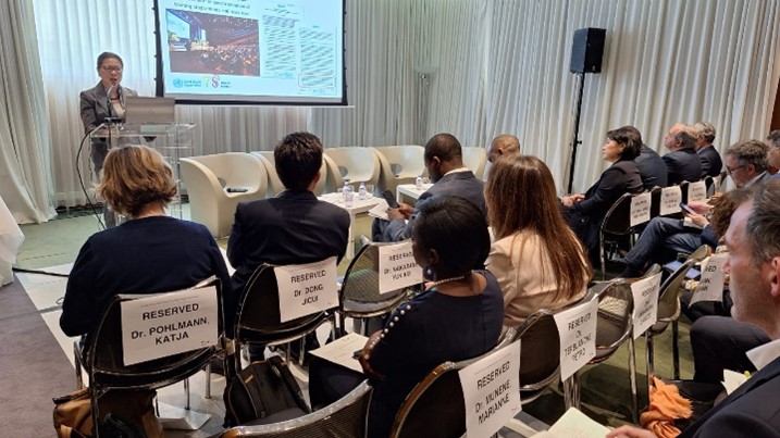 Dr Jicui Dong, Unit Head of the Local Production and Assistance Unit, delivered a presentation on the WHO Biomanufacturing Workforce Training Initiative during the Advocacy Event in Geneva.