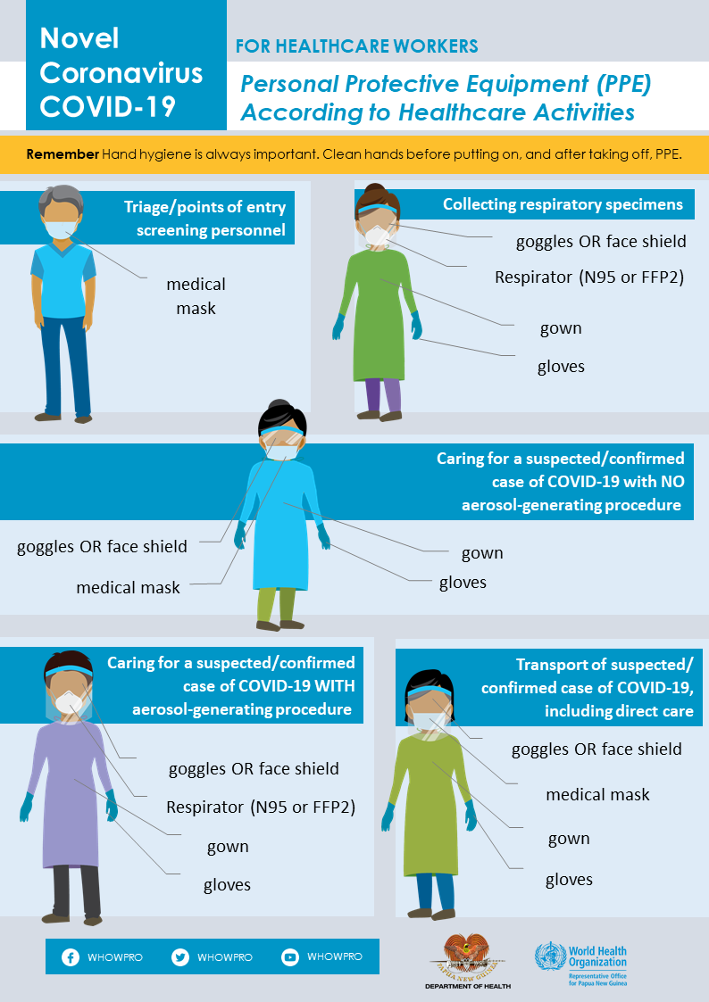 - Personal Protective Equipment (PPE) according to healthcare activities