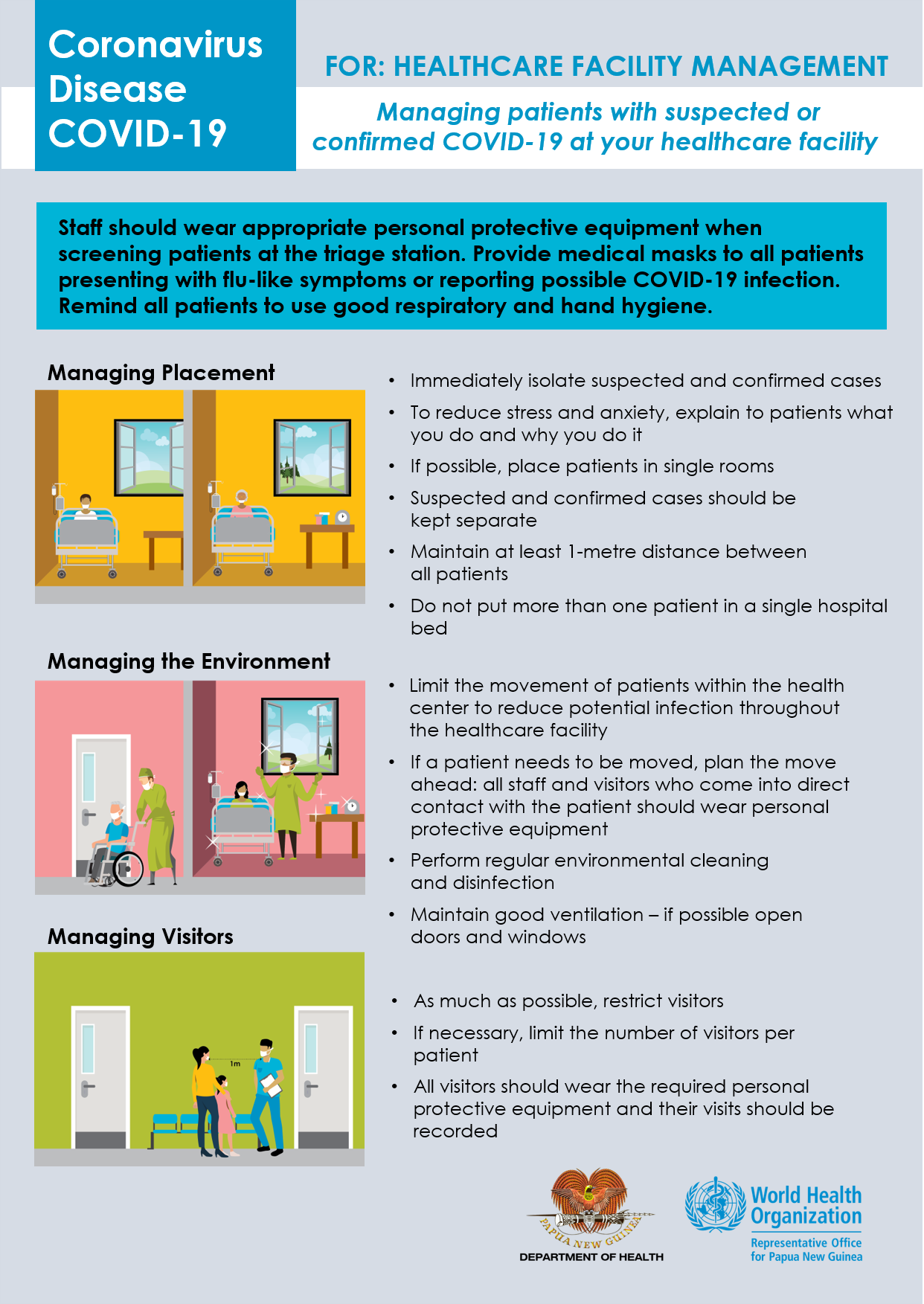 - Managing patients with suspected or confirmed COVID-19 at your healthcare facility