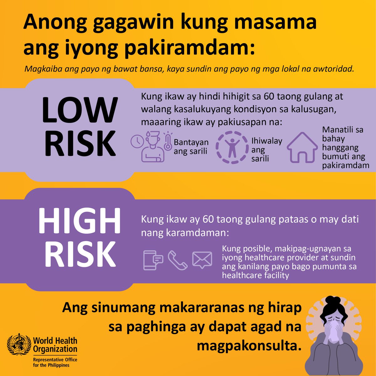 Ang sinumang makakaranas ng hirap sa paghinga ay dapat agad magpakonsulta.