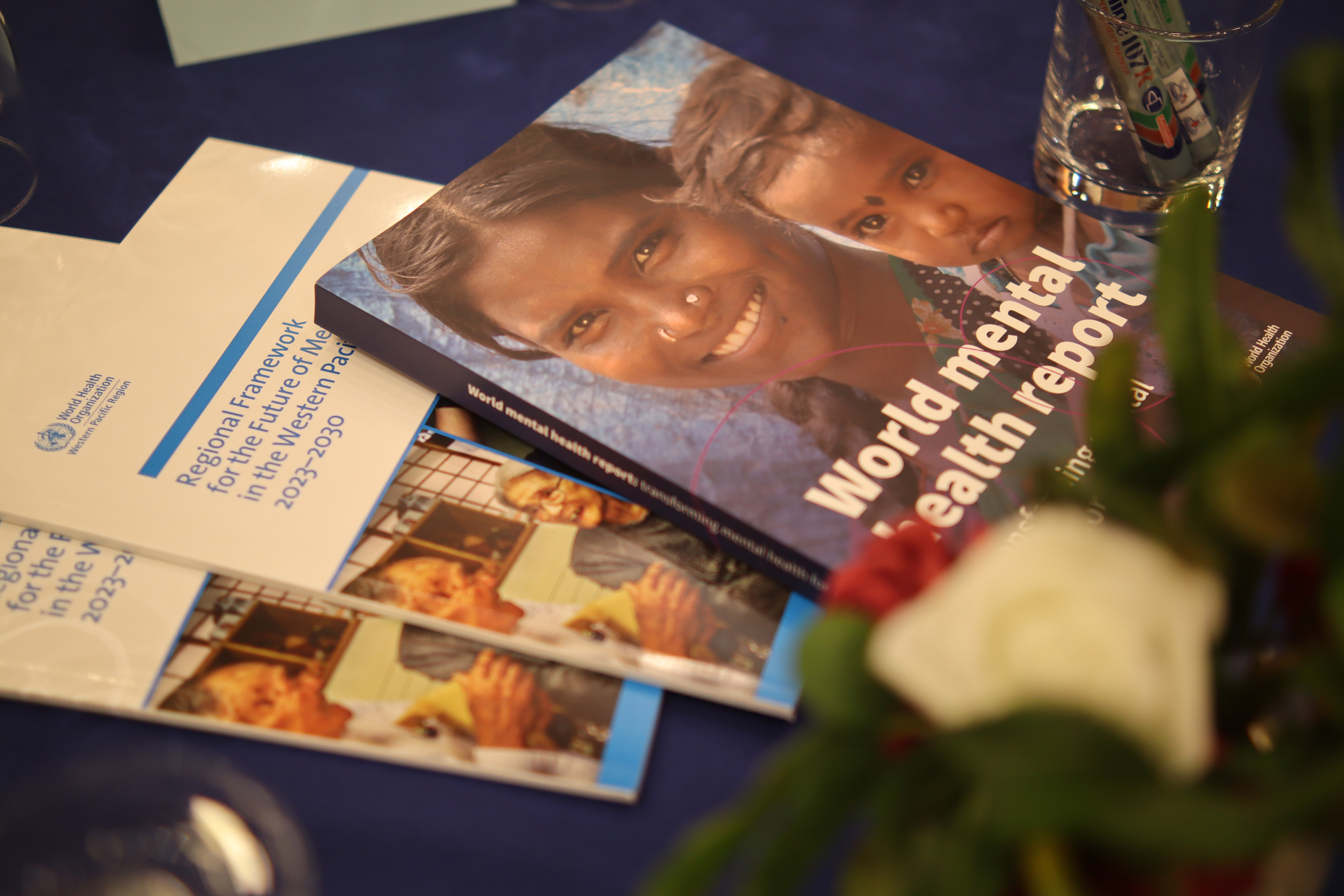 Copies of the World Mental Health Report and Regional Framework for the Future of Mental Health in the Western Pacific 2023-2030 distributed to participants at the WHO Special Initiative for Mental Health in the Philippines (c) DOH-Western Visayas