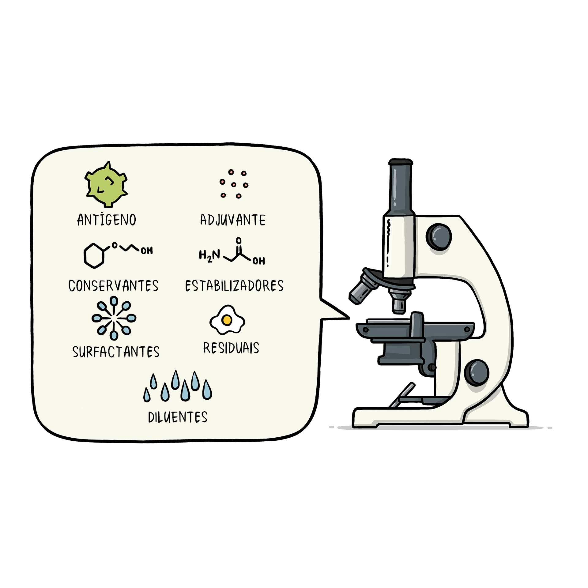 Cada componente da vacina serve um propósito específico e cada ingrediente é testado durante o processo de fabrico. São feitos testes à segurança de todos os ingredientes.