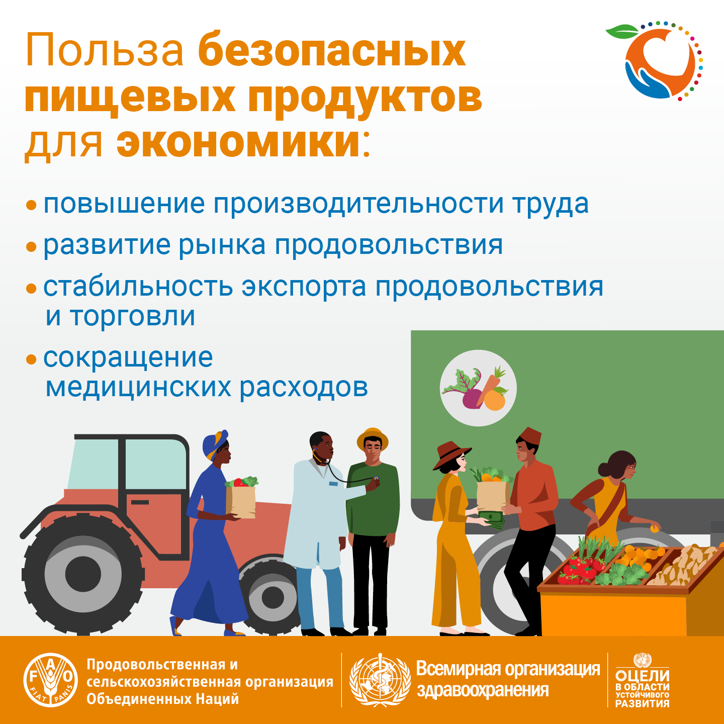 Безопасность пищевых продуктов – это общая ответственность государства, производителей и потребителей. Каждый должен вносить свой вклад на всем протяжении продовольственной цепи – от фермы до обеденного стола, — чтобы продукты питания, которые мы потребляем, были безопасными и здоровыми. В рамках Всемирного дня безопасности пищевых продуктов ВОЗ старается привлечь внимание общества к соответствующим вопросам и прилагает усилия к сокращению бремени болезней пищевого происхождения во всем мире. Обеспечение безопасности пищевых продуктов – дело каждого.