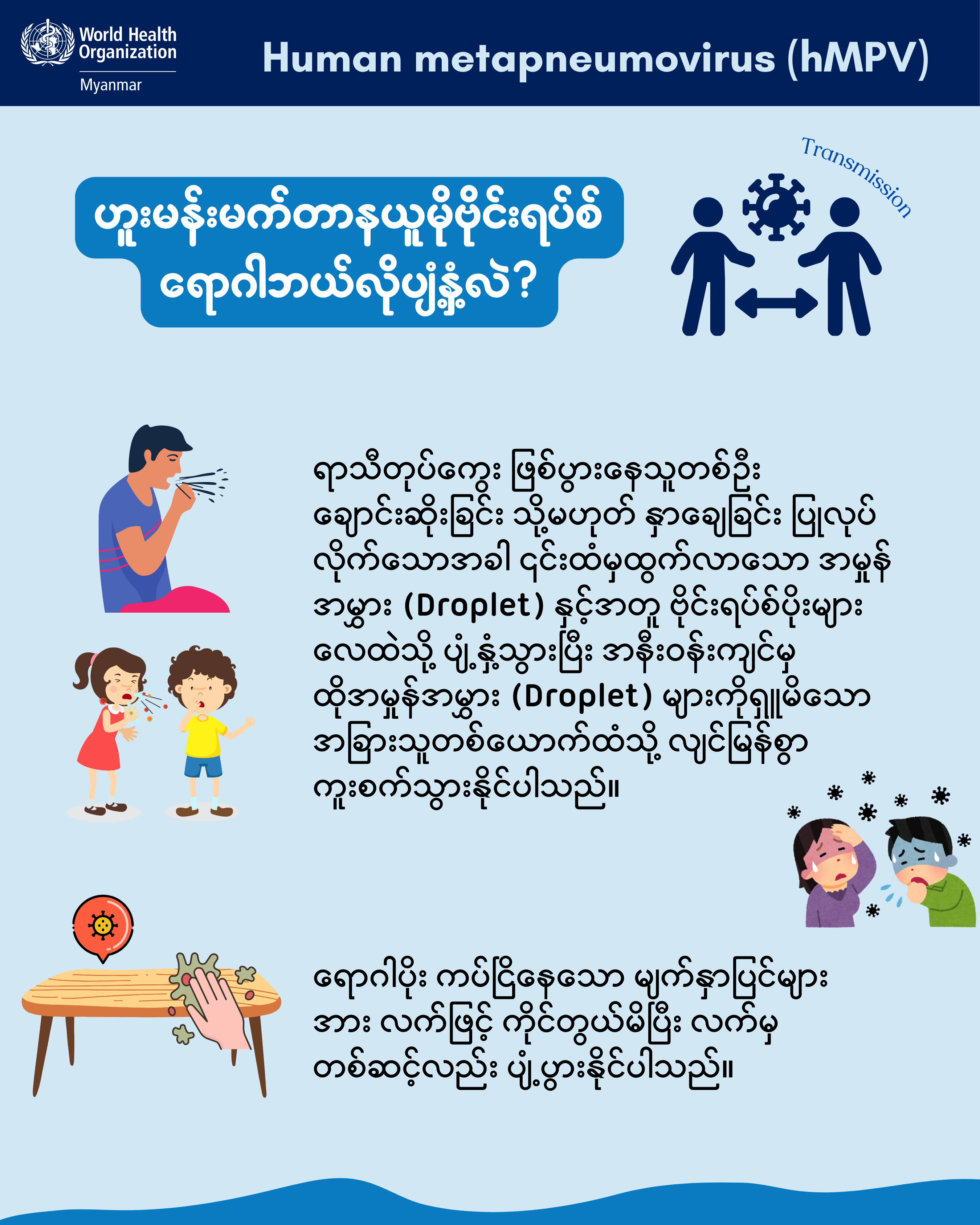 Human metapneumovirus (hMPV): Transmission_infographic (in Myanmar Language) 16 January 2025 | graphics (infographic) WHO Team Myanmar