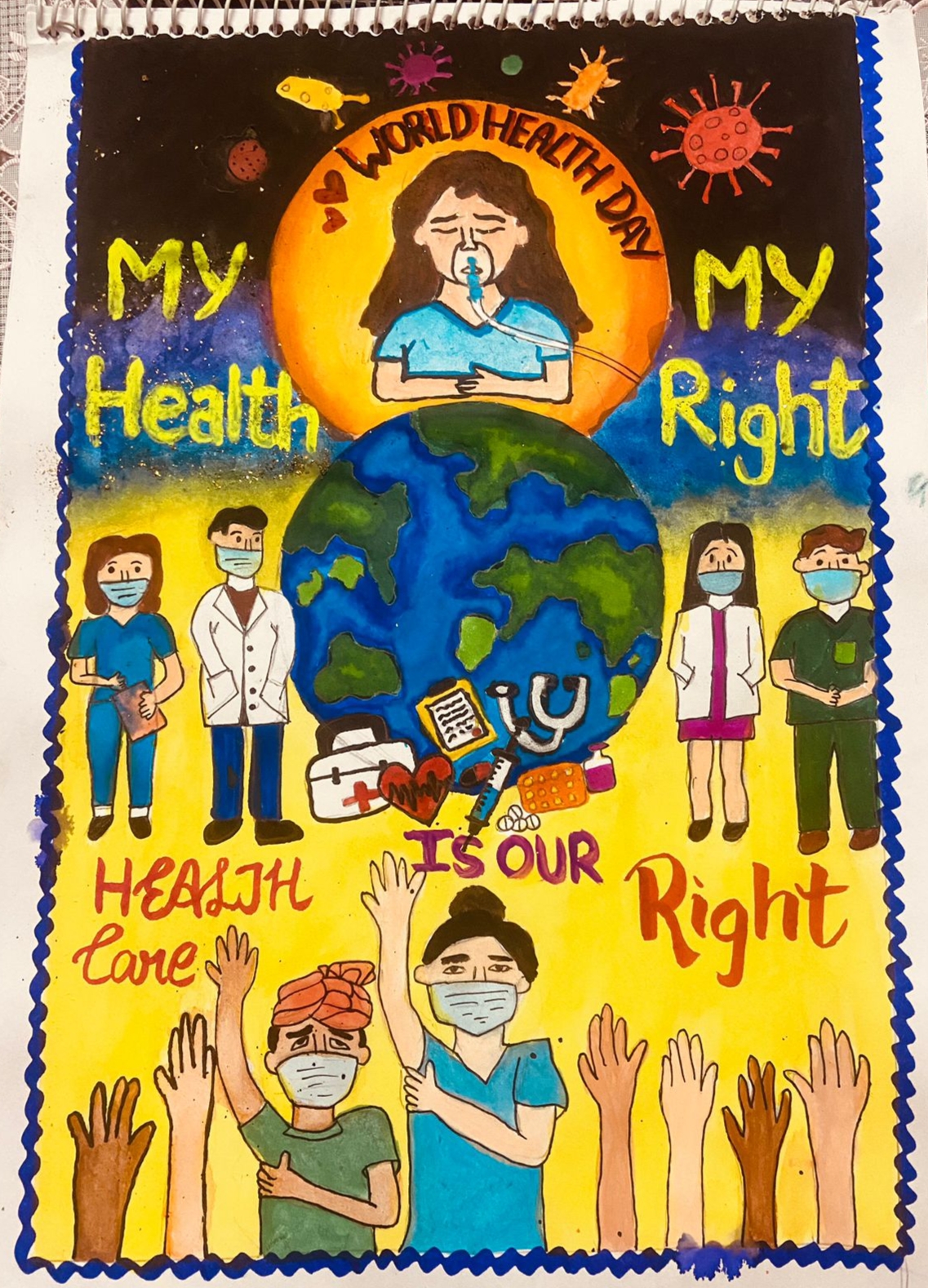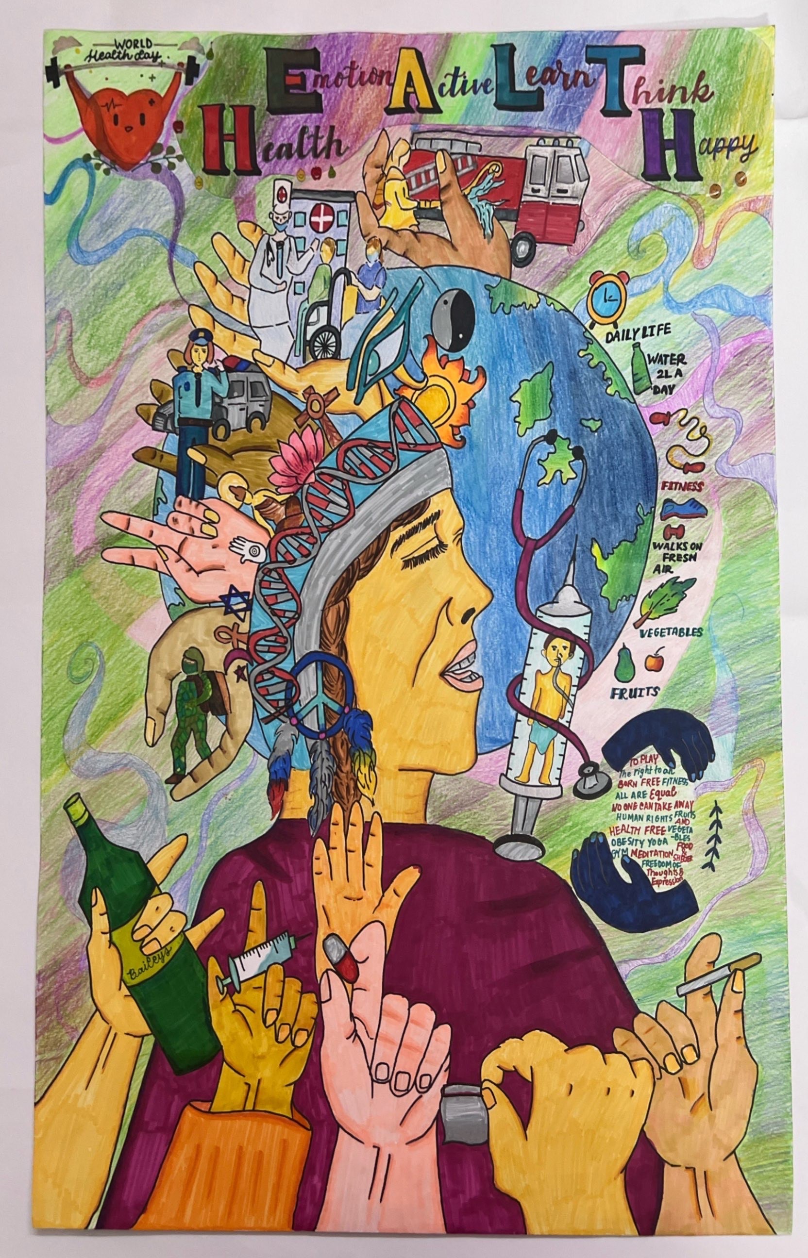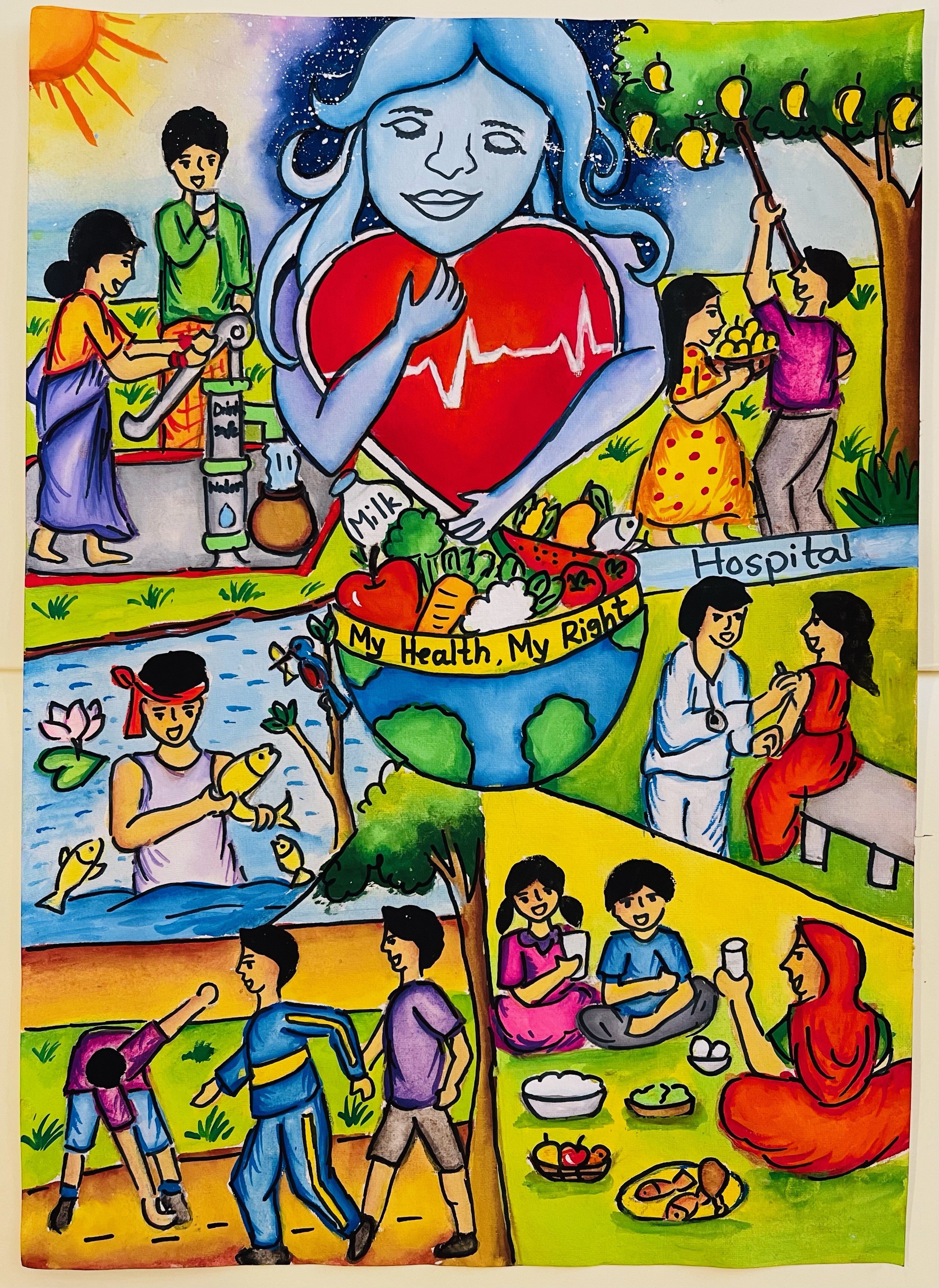 The World Health Day 2024 art competition was open to all living in WHO South-East Asia Region. The entries invited were in two categories – Category 1: Drawings and paintings on paper/canvas in oil, acrylic, colour pencils, crayons etc, and Category 2: Digital art.