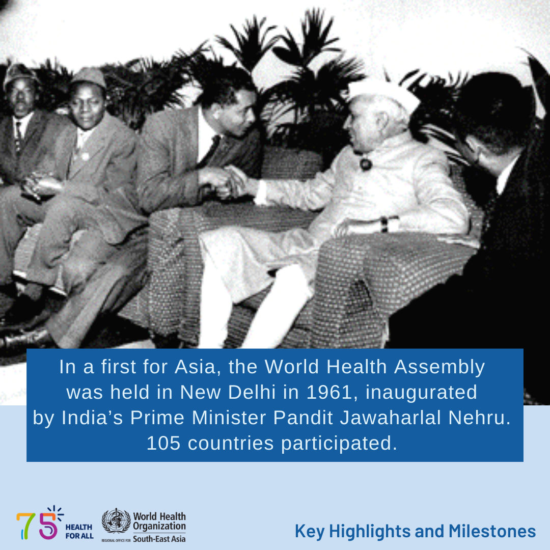 The first Regional Committee Session of WHO South-East Asia Region was led by India’s first Prime Minister Pandit Jawaharlal Nehru and WHO’s first Director-General Dr Brock Chisholm in New Delhi in October 1948.