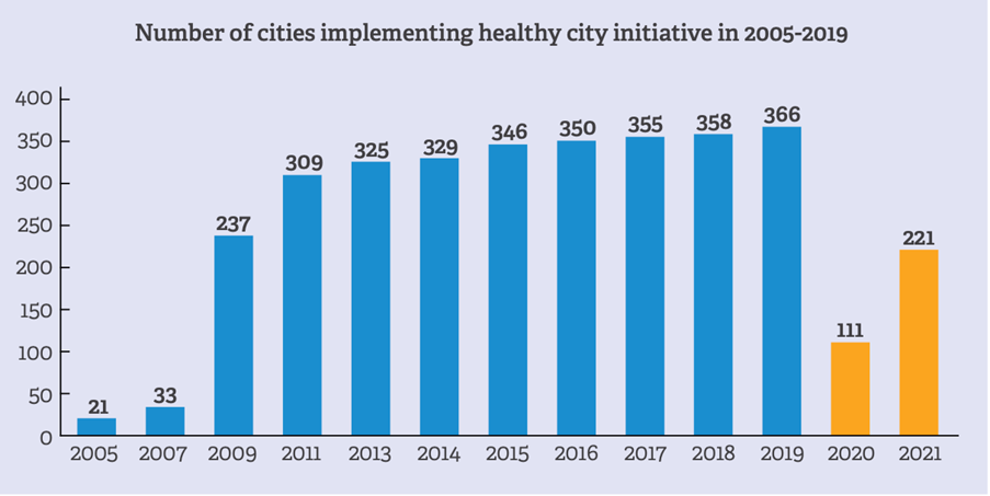 However, despite the commitment, the number of cities/regencies that participated in the Healthy City/Regency appraisal in 2021 declined as local governments’ focus was on controlling the spread of COVID-19 and mitigating its impact.