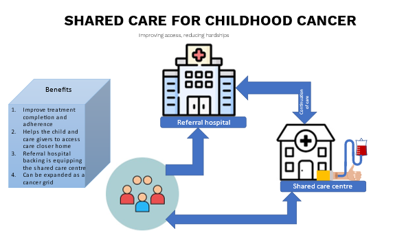 Making all or part of the treatment available nearer the child’s home has been shown to help overcome some of these factors and improve adherence to treatment, reduce financial and other burdens, and incrementally improve cancer care capacity. A few studies available in medical literature show a similar outcome between shared care and usual care among childhood cancer survivors.