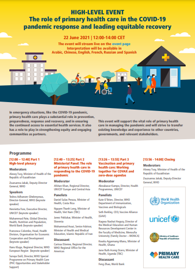 High-level event: The role of Primary Health Care in the COVID-19 pandemic response and leading equitable recovery