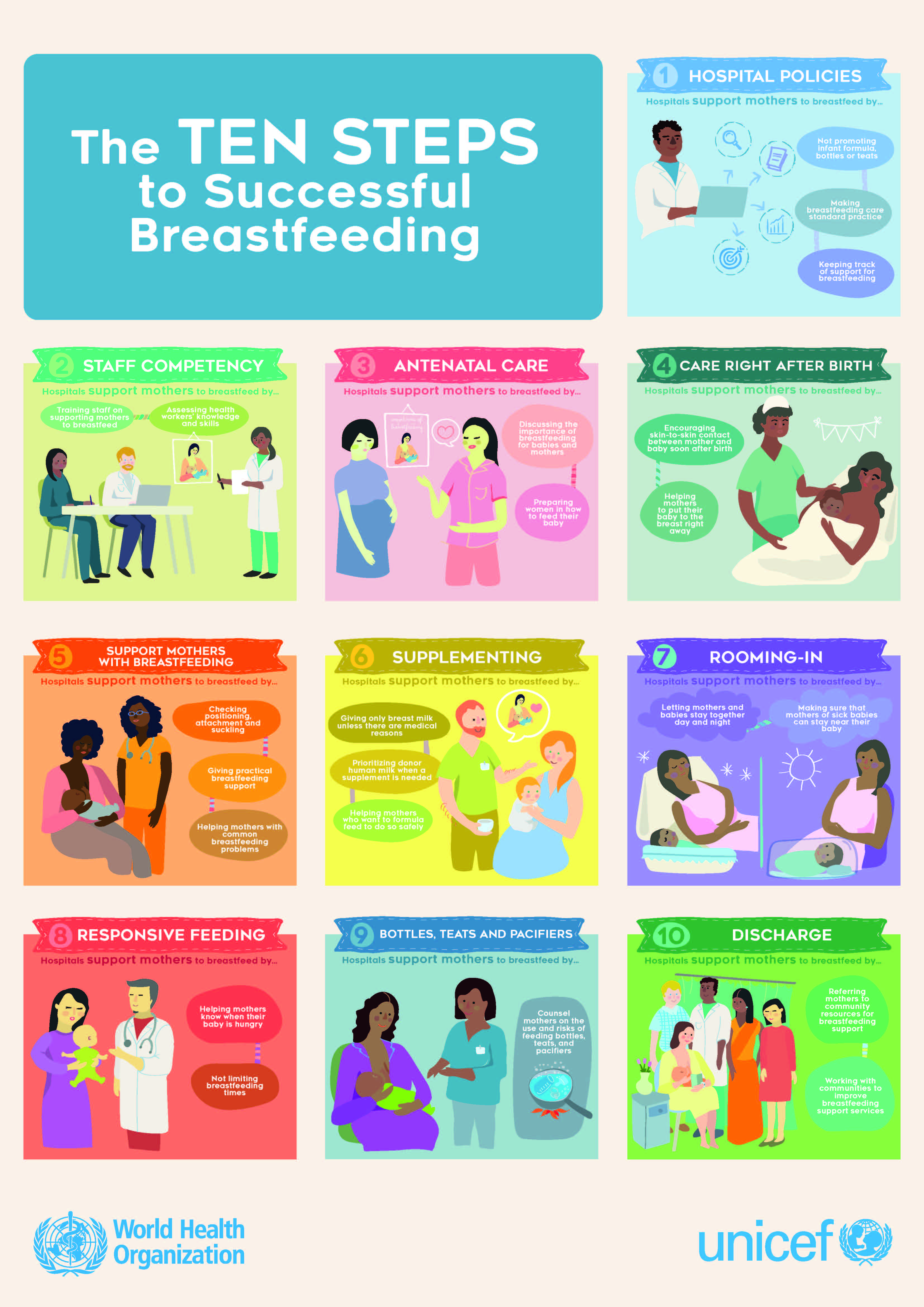 WHO and UNICEF launched the Baby-friendly Hospital Initiative (BFHI) in 1991 to help motivate facilities providing maternity and newborn services worldwide to implement the Ten Steps to Successful Breastfeeding. The Ten Steps summarize a package of policies and procedures that facilities providing maternity and newborn services should implement to support breastfeeding. In 2018, WHO revised the Ten Steps based on the 2017 guideline on protecting, promoting and supporting breastfeeding in facilities that provide maternity and newborn services.