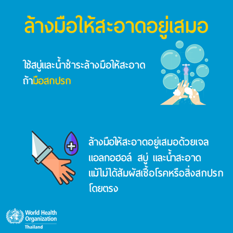 เหตุผล การล้างมือด้วยน้ำและสบู่ หรือใช้เจลถูมือที่มีส่วนผสมของแอลกอฮอล์สามารถกำจัดเชื้อไวรัสที่อยู่บนมือเราได้