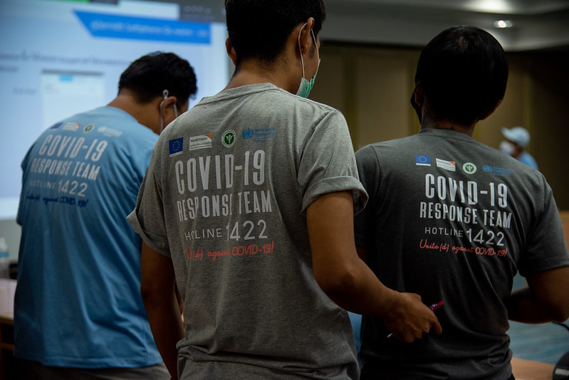 As COVID-19 continues to threaten livelihoods, it’s vitally important that health authorities continue to relay important risk messages to everyone in Thailand, including migrant workers and their families from neighbouring countries such as Laos, Cambodia, Myanmar and Vietnam. It’s equally important for migrant communities to have a point of contact they can rely on when they require information or practical support. To meet this need, the COVID-19 hotline 1422 was established in April 2020 by the Department of Disease Control of the Ministry of Public Health with technical input from the WHO Office for Thailand and partners such as the World Vision Foundation of Thailand (WVTHA). The hotline serves as a trusted source of information on COVID-19 in six languages: English, Thai, Khmer, Laos, Burmese and Vietnamese. Thanks to generous funding from the European Union the programme has provided high-quality training to hotline responders, to help them to raise awareness of preventive measures.