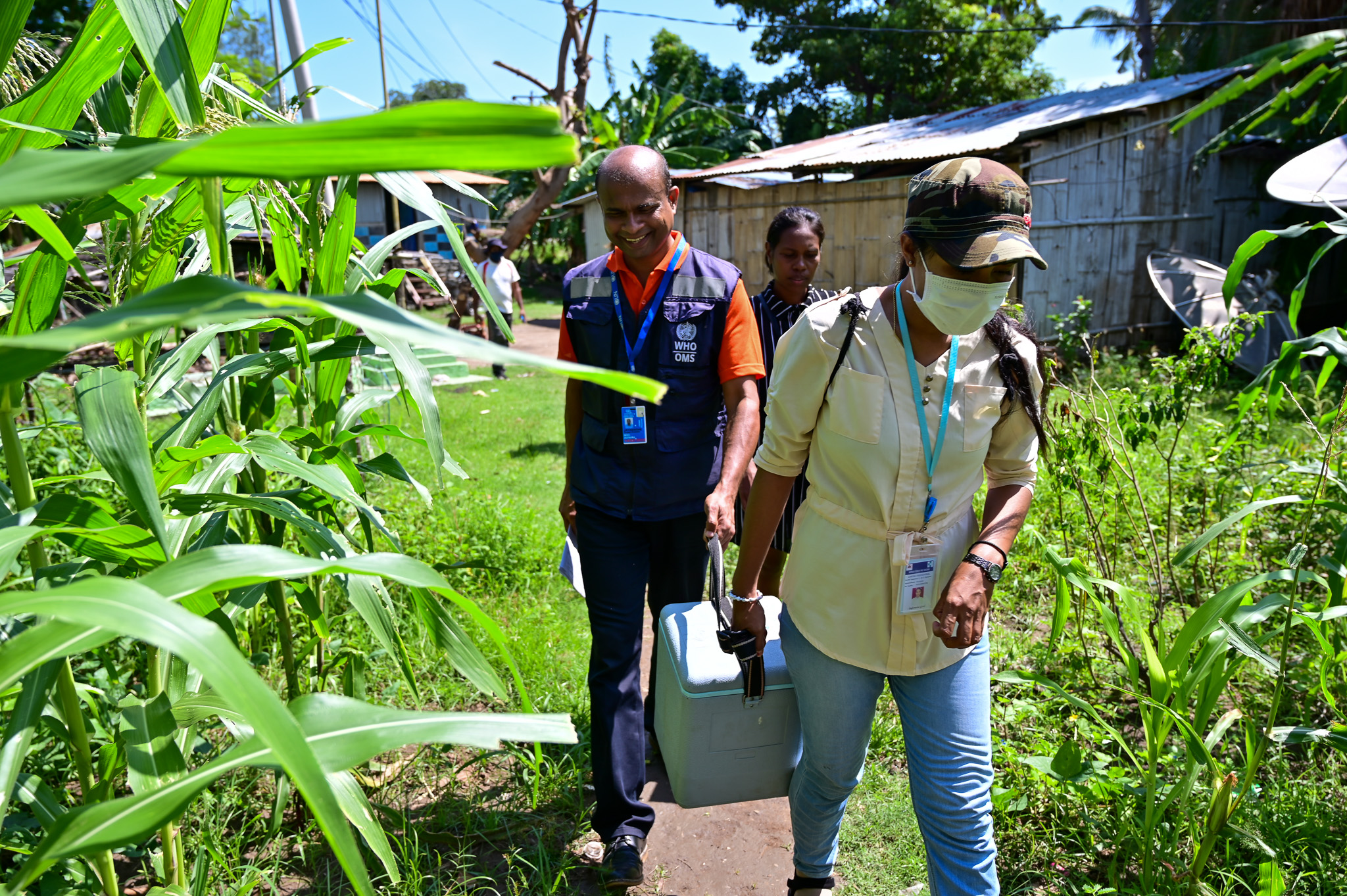 Armed with the necessary shots in a vaccine carrier, health workers from the Ministry of Health and immunization consultants appointed by the World Health Organization (WHO) traverse difficult terrains to reach communities in remotest parts of Timor-Leste to ensure that children like Natazu are not left behind.