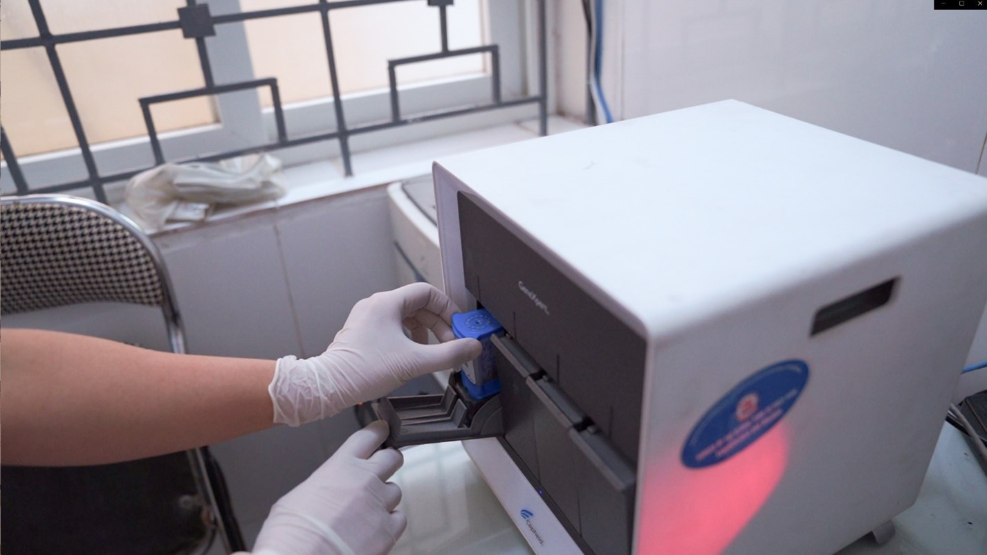 At Nam Tu Liem District Health Centre in Ha Noi, health care workers fed a sample of Ms Tuoi’s blood into a point of care testing machine. Within 60 minutes, the hepatitis C virus had been detected. That same day, she received the first month of a three-month course of medication.