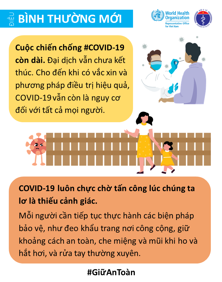 Nhưng điều này không có nghĩa là chúng ta nên quay trở lại ‘trạng thái bình thường cũ’. Nếu không cảnh giác và bảo vệ chúng ta và những người khác, số ca mắc #virus corona có thể tăng trở lại.