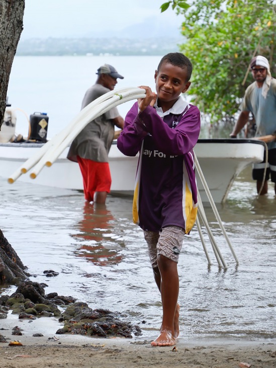 Samu, who was born in Laucala Village and calls it home, is leading a group from the island to transport the materials as part of the Strengthening Health Adaptation Project: Responding to Climate Change in Fiji (SHAPE Project). This multi-year US$ 5.5 million project is generously funded by Korea International Cooperation Agency (KOICA). The project is supporting the building of climate resilient health systems, which includes investment in health facilities, the health workforce and communities across Fiji.