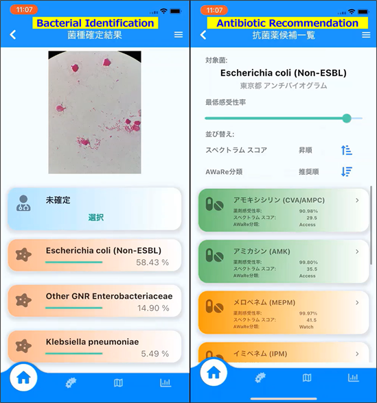 CarbGeM’s AI-based image recognition smartphone application, BiTTE, reads microscopic images of gram-stained samples from patients who might have infection. BiTTe then sends the images to CarbGeM’s cloud server and obtains the name of the bacteria in the samples. Finally, BiTTe presents physicians appropriate antimicrobials for the treatment based on available antibiograms, for example regional antibiograms or WHO’s AWaRe Classification.