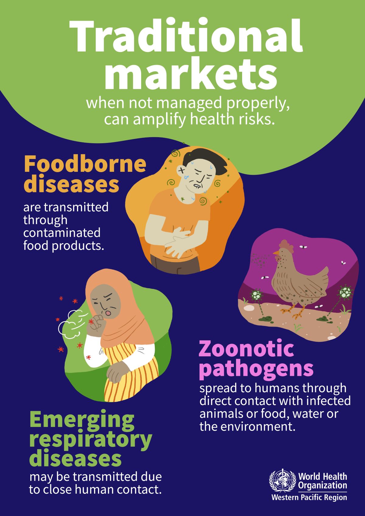 Traditional food markets can pose health risks 8 December 2023 | graphics (poster) WHO Team Food Safety (FOS), WHO Western Pacific
