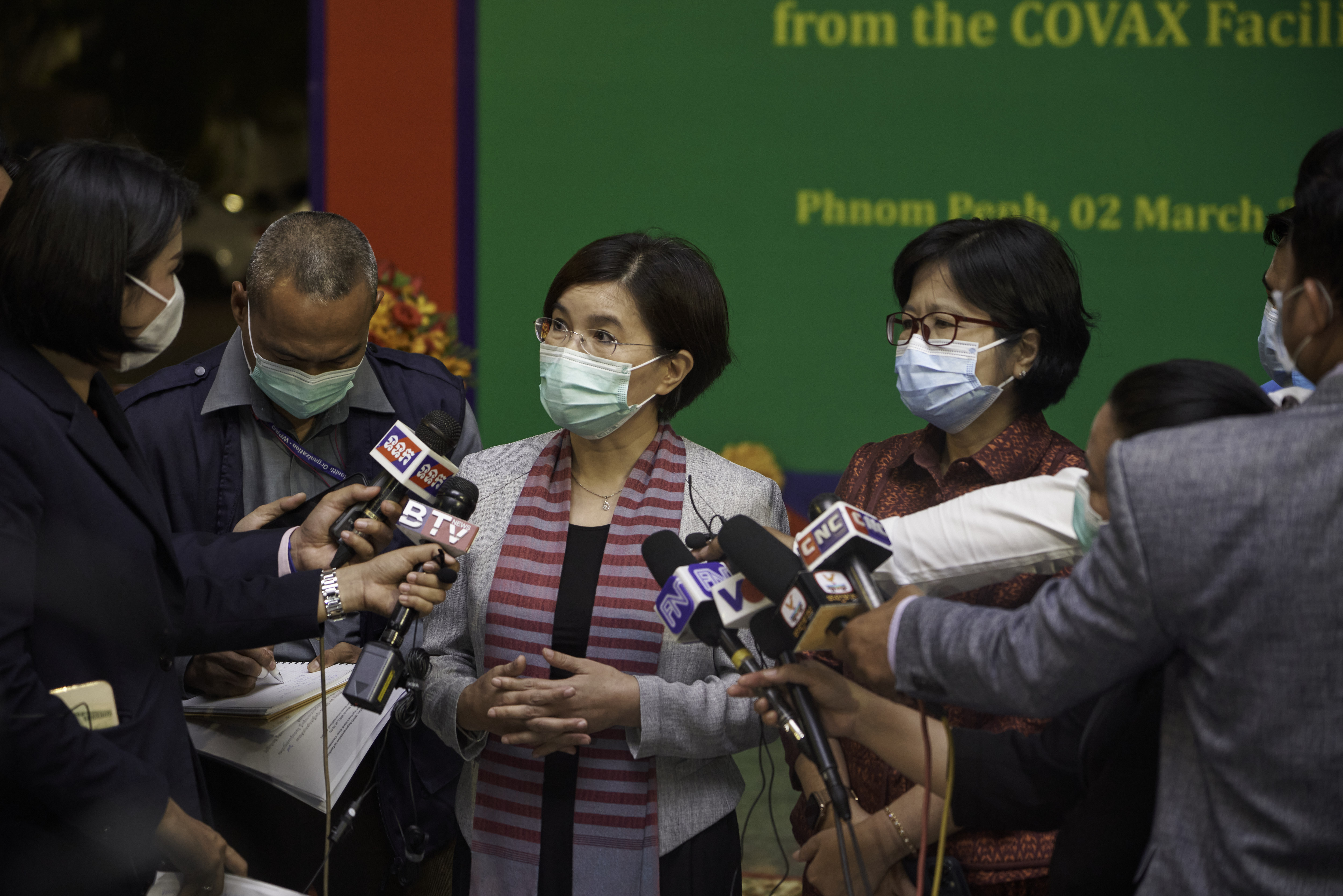 To date, healthcare workers like Pisey have administered the first dose of the AstraZeneca vaccine to tens of thousands of people in Cambodia. WHO is proud to support the RGC, particularly MOH, in rolling out COVID-19 vaccines in close cooperation with all partners, especially UNICEF, and is grateful for all contributions to COVAX and for other support for the vaccination programme.