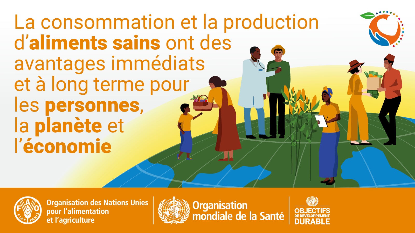 Sous le thème « Des aliments sains pour un avenir sain », la campagne de cette année vise à souligner les effets bénéfiques immédiats et à long terme de la production et de la consommation d’aliments sûrs pour la population, la planète et l’économie. Reconnaître les liens systémiques qui existent entre la santé des êtres humains, des animaux, des plantes, de l’environnement et de l’économie nous aidera à faire face aux besoins de demain.