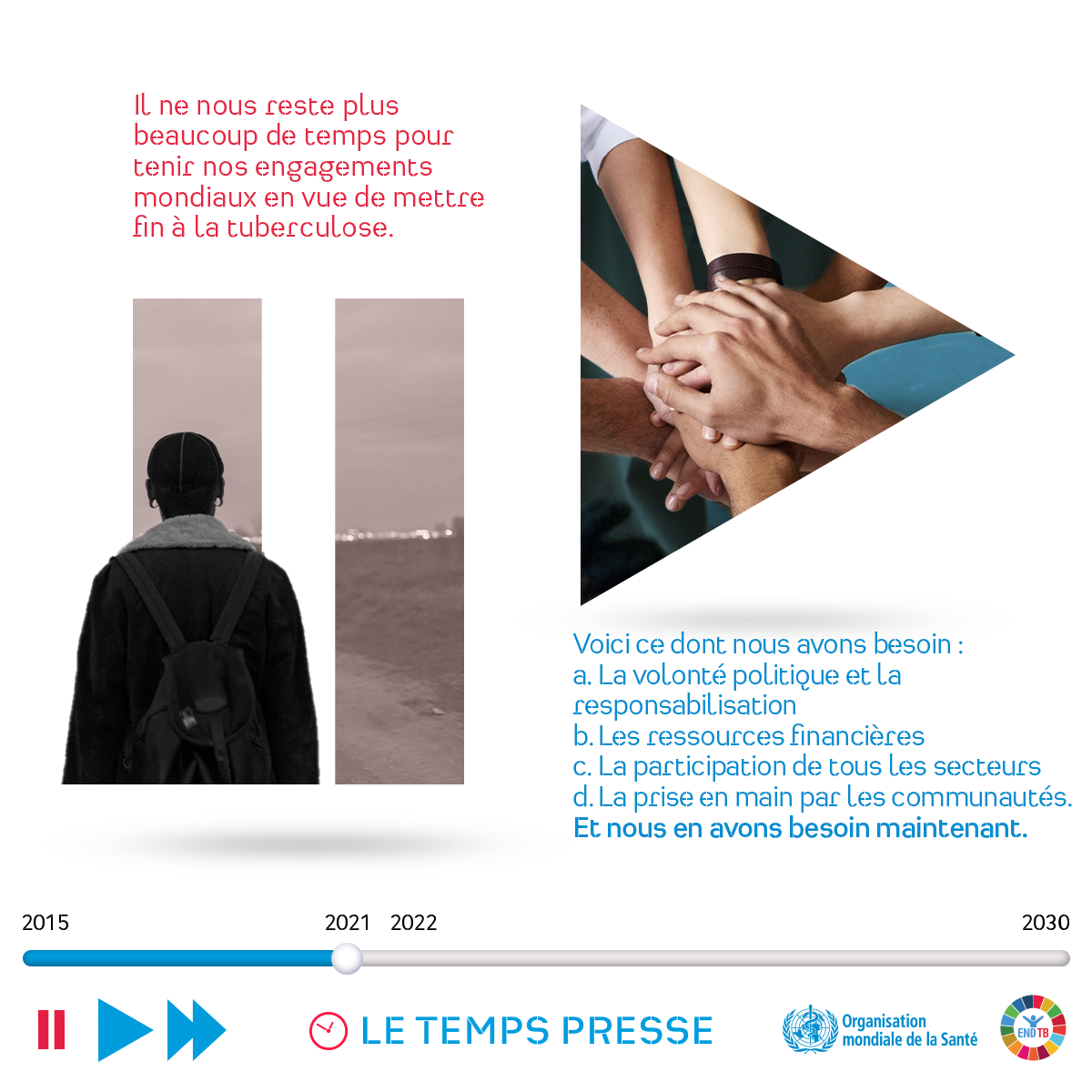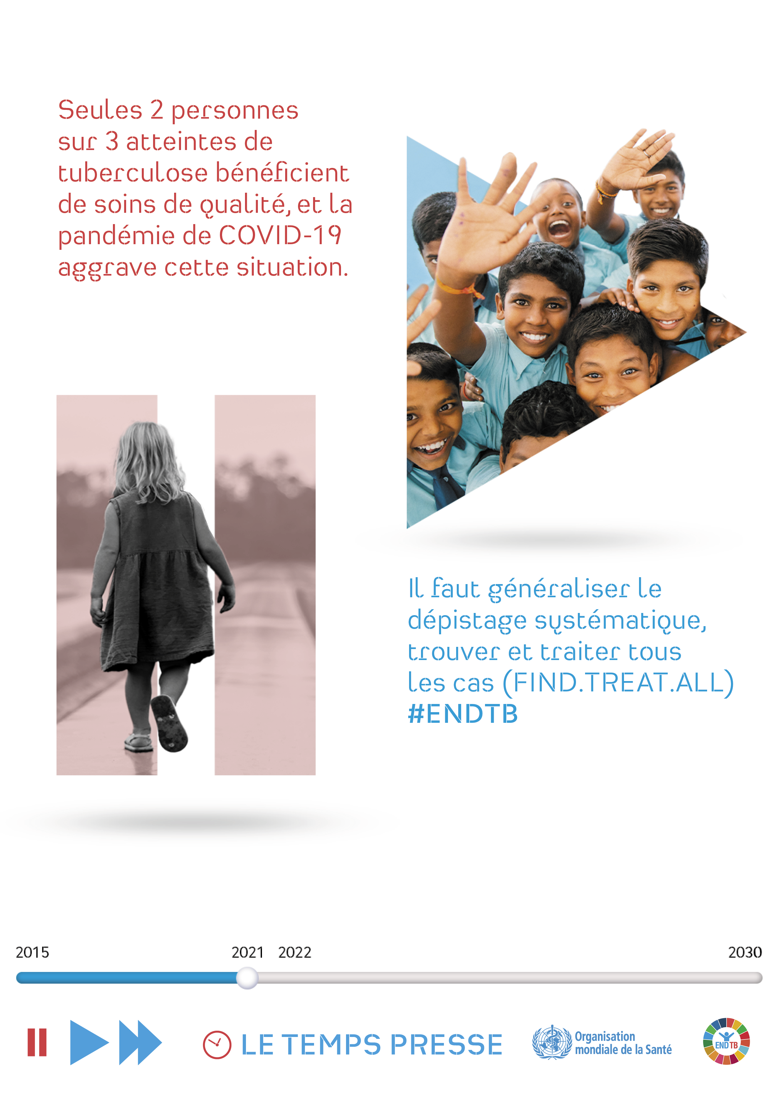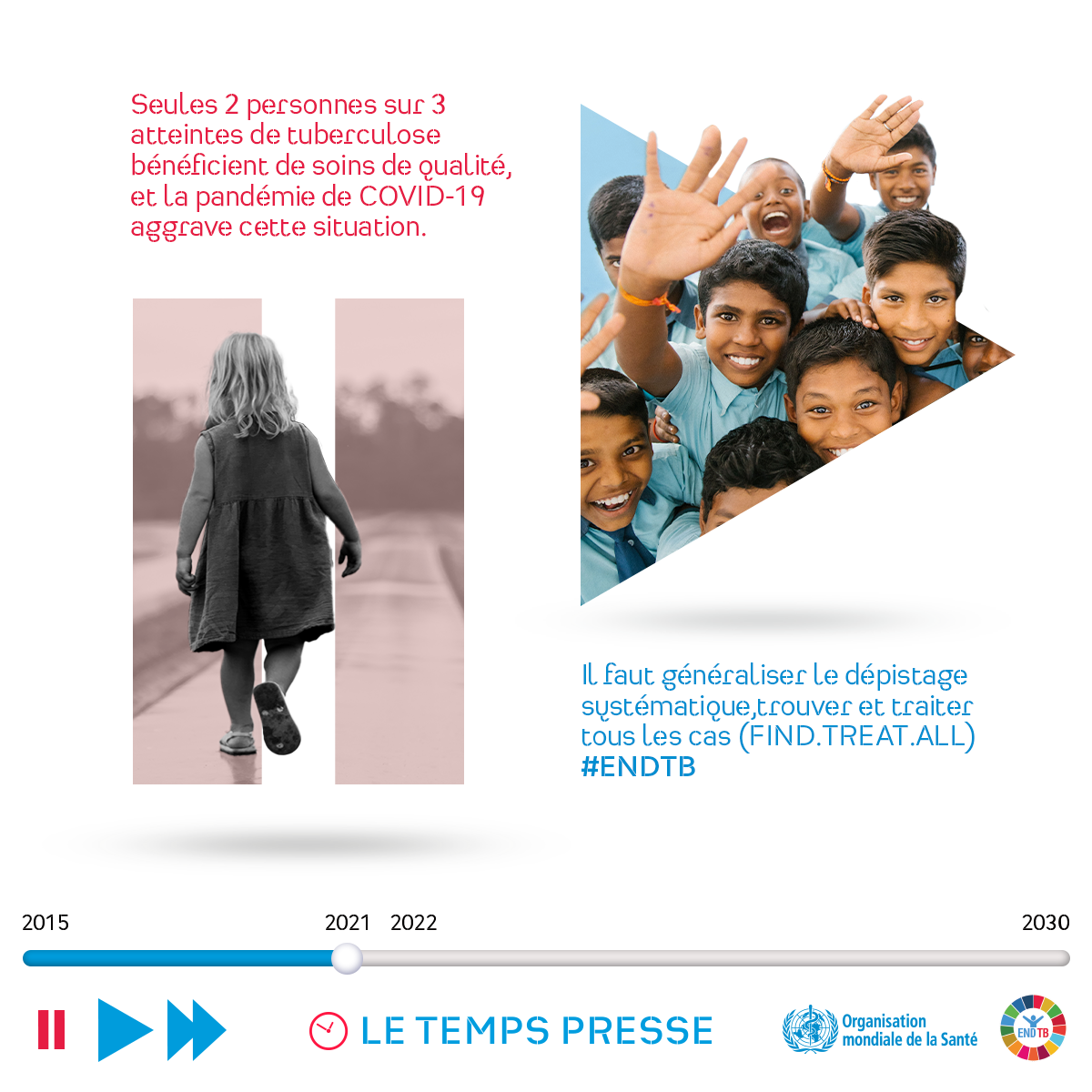 Le 24 mars de chaque année, nous célébrons la Journée mondiale de lutte contre la tuberculose pour sensibiliser l’opinion publique aux conséquences sanitaires et socioéconomiques dévastatrices de cette maladie, et pour intensifier l’action visant à mettre fin à l’épidémie mondiale de tuberculose. Partagez ces supports de communication sur les réseaux sociaux afin de sensibiliser à la cause de la campagne et afin d'obtenir du soutien en sa faveur.