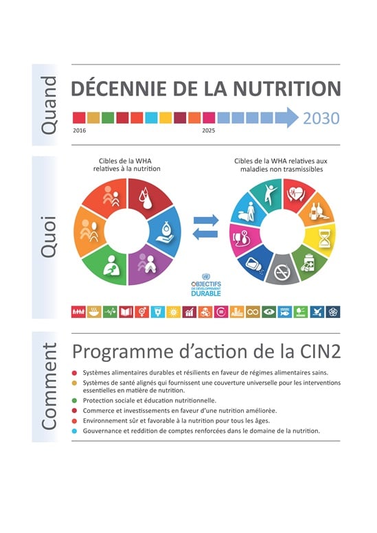 Les maladies non transmissibles sont reconnues comme un défi mondial majeur dans le Programme de développement durable à l’horizon 2030 des Nations Unies. En effet, le Programme fixe la cible consistant à réduire d’un tiers les décès prématurés dus aux MNT d’ici 2030. L’OMS joue un rôle de premier plan dans la coordination et la promotion de la lutte mondiale contre les maladies non transmissibles et dans la réalisation de la cible 3.4 des Objectifs de développement durable.