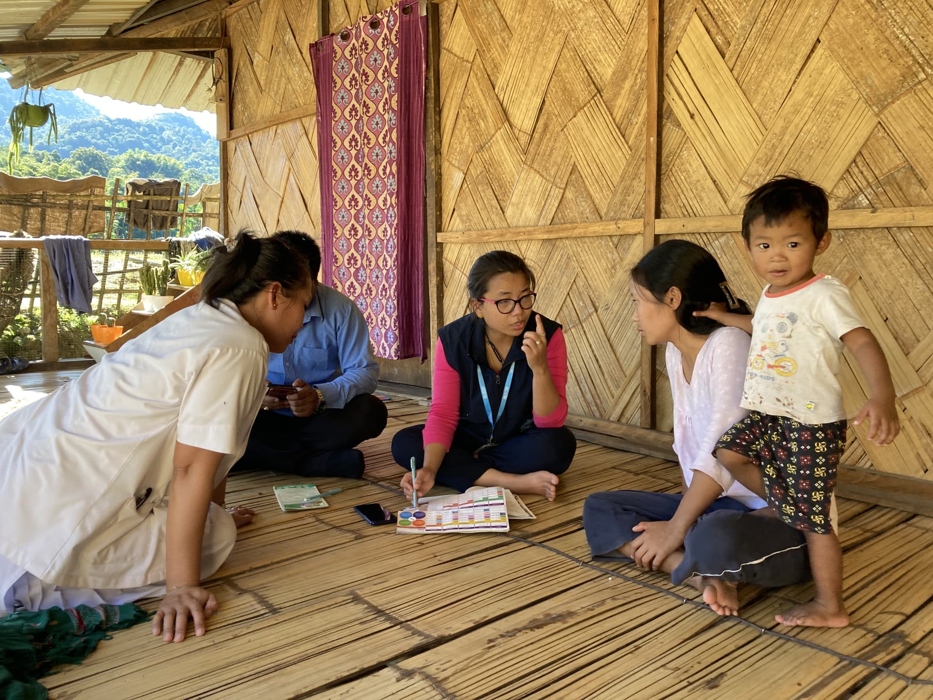 The first family they visit is the Mossang home, where the active two-year-old Khimthoi spends his day with his building blocks or chasing hens around the yard. “I don’t know where he gets the energy from, he keeps me on my feet all day,” said Ms Hamnon Mossang, 24, who lives in Lungpang-II village.