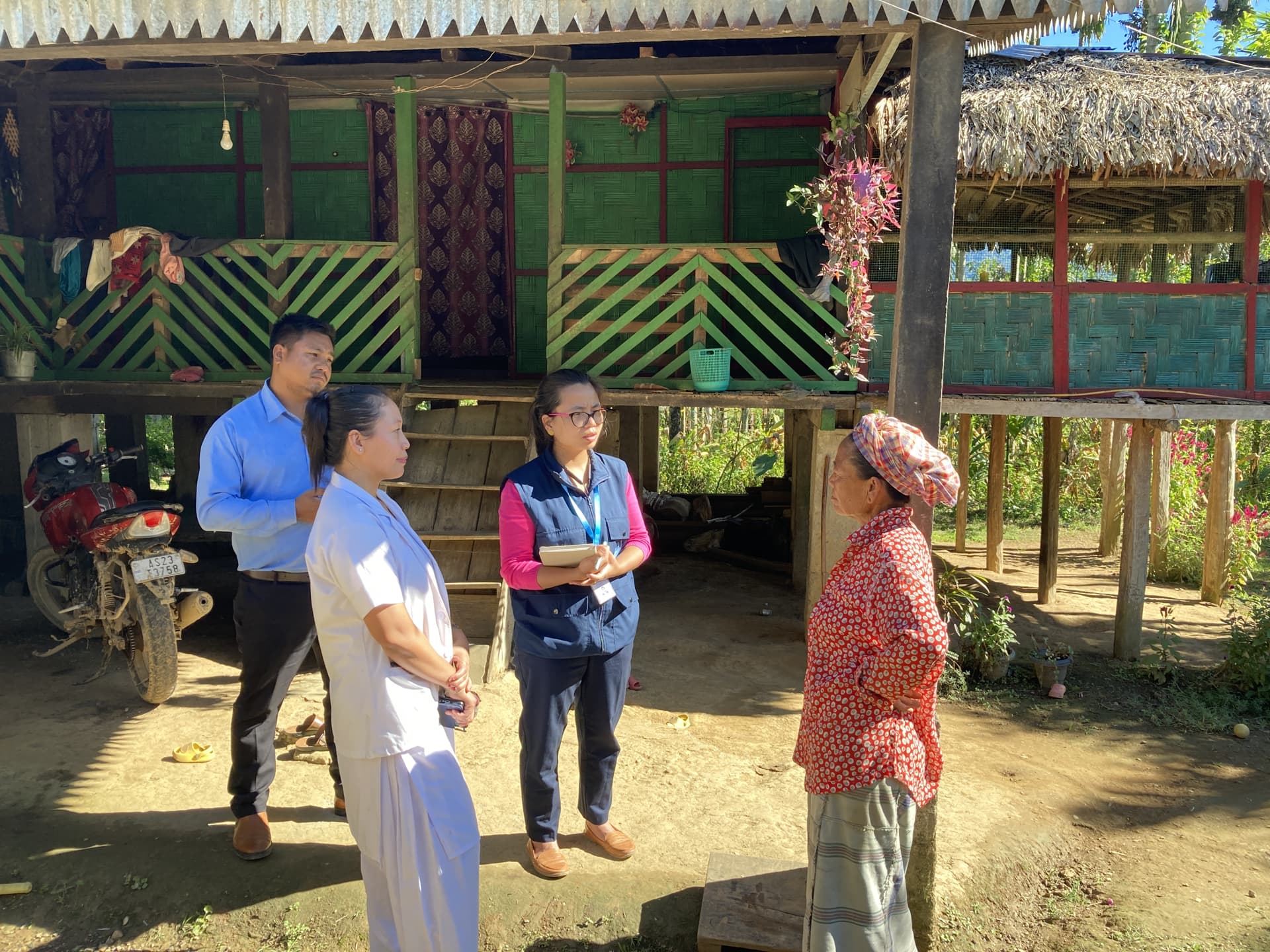 Khimthoi’s immunization card is among many reviewed by the health team across three villages in one day. It shows he was born on 24 April 2021 with a healthy birthweight of 3.1 kg. His routine vaccinations are up to date, despite the closest health sub-centre in Rima Putok being 10 km away. “We get him immunized at outreach clinics organized by the district medical team. Now that he is older, his father takes him to the sub-centre on his motorbike, when needed,” said Ms Mossang.