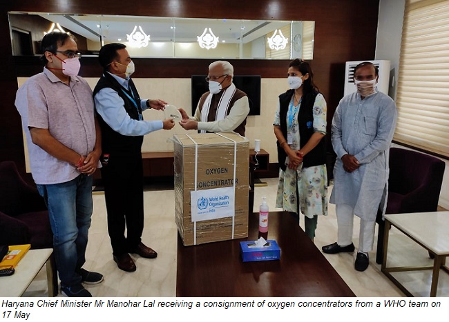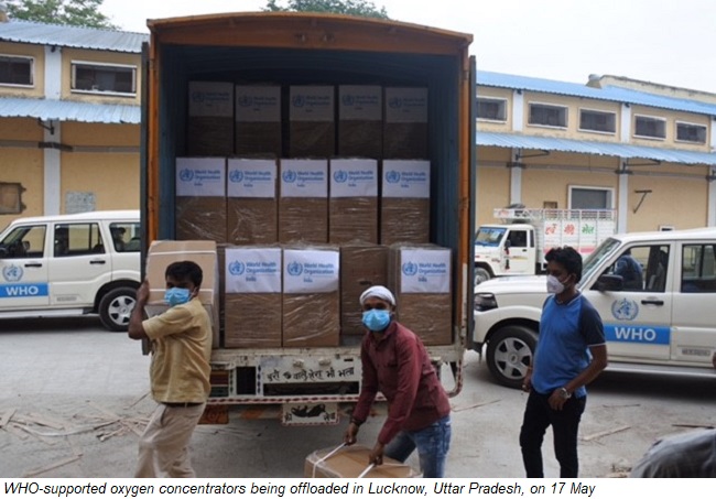 On 15 May, 170 metric tons of WHO-supported medical resources, including oxygen concentrators and tents for temporary health facilities, reached Delhi and within two days, 27 truckloads of these have been rushed to states for rapid deployment in India's COVID-19 response.