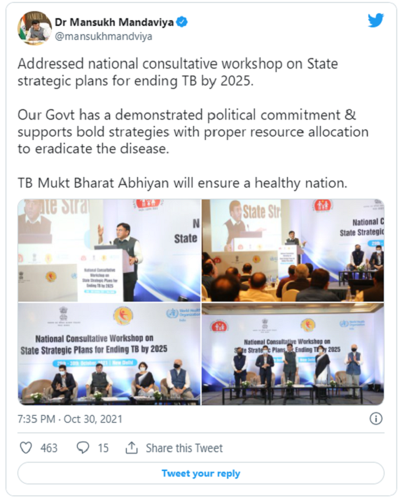 The Government of India’s Ministry of Health and Family Welfare organised a national consultative workshop on 29 and 30 October 2021 to facilitate states and union territories (UTs) to draw up their State Strategic Plans for Ending Tuberculosis (TB) in the country by 2025.